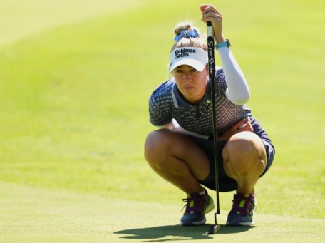 She braved the sweltering heat, walking all but a three-hole stretch of her daughter’s round, which inspired Lexi Thompson to dig deep for a one-under-par 71. Thompson stood five strokes off the early lead held by Feng Shanshan.